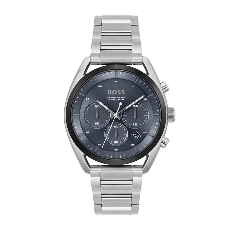 Montre Boss Top Acier Argente Rond Quartz 44mm Fond Bleu Bracelet Acier Argente 1514093