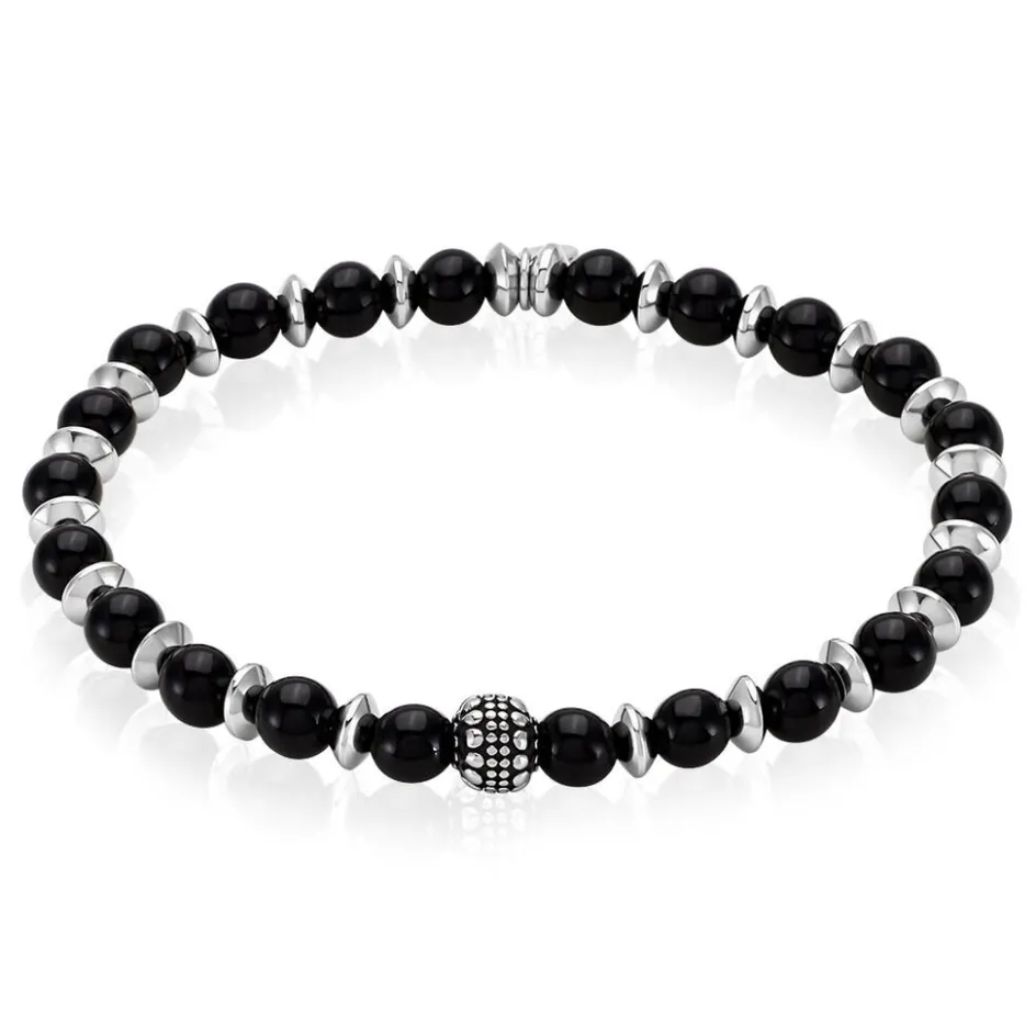 Bracelet Jourdan Homme Acier Gris Onyx Noir Elastique Jh250003b