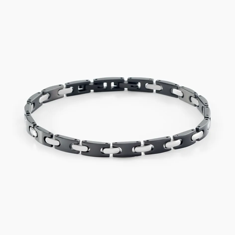 Bracelet Jourdan Homme Dinema Acier Argente Et Maillons Noirs 20-21cm Li011h