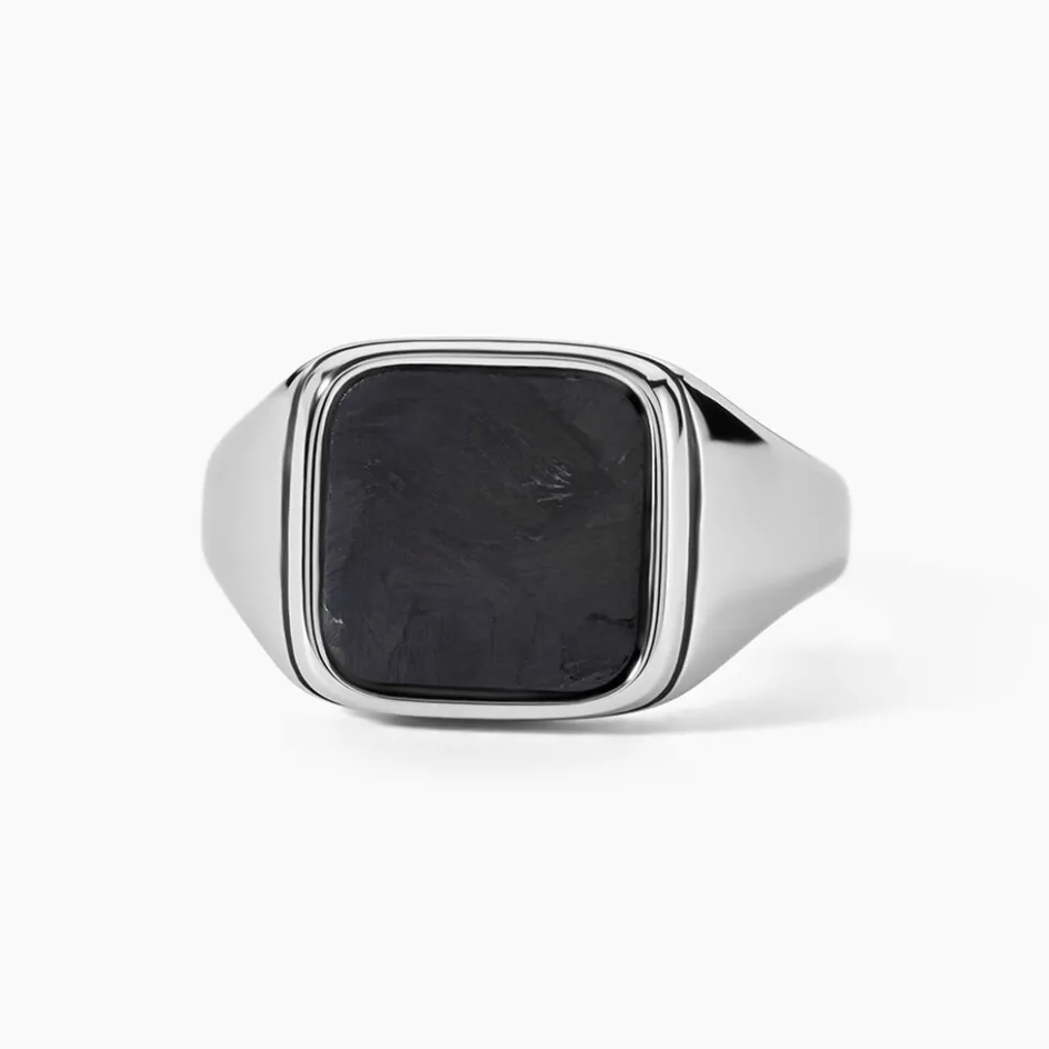 Chevaliere Jourdan Jeremiah Acier Inoxydable Argente Et Carbone Carre Jh250127r
