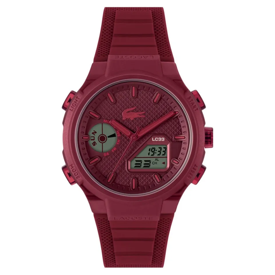 Montre Lacoste Lc33 Tr90 Bordeaux Quartz Anadigit Multifonctions Ronde 44Mm Fond Bordeaux Bracelet Silicone Bordeaux 2011450