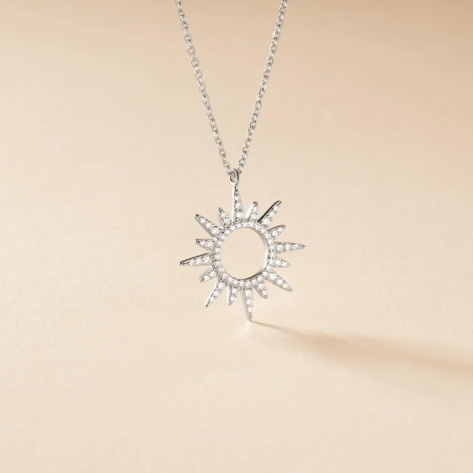 Collier Argent Blanc 925/1000 Soleil Ajoure Pavage Oxydes De Zirconium 45cm