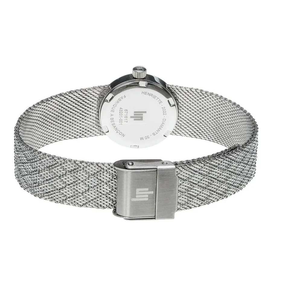 Montre Lip Henriette Diamant Acier Argenté Ronde Quartz 22mm Fond Nacre Noire 4 Diamants Bracelet Acier Argenté Polonais 671617