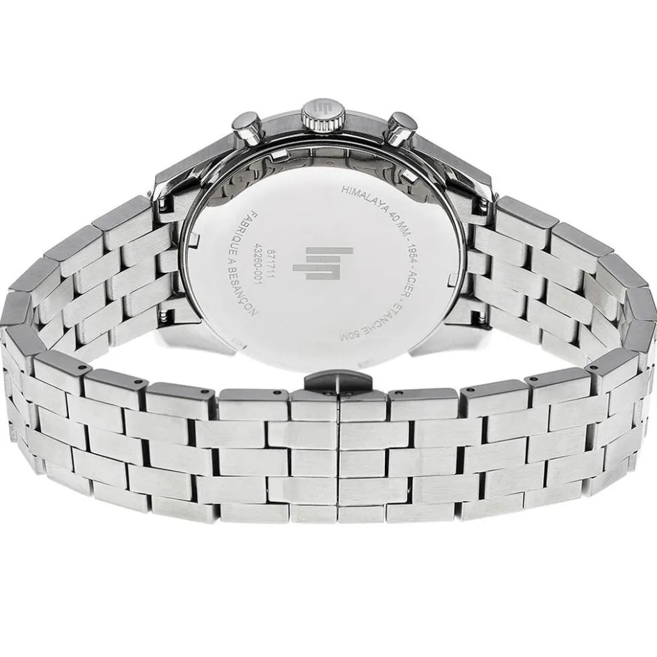 Montre Lip Himalaya Chrono Acier Argente Ronde Quartz Chronographe 40mm Fond Vert Bracelet Acier Argente 671711