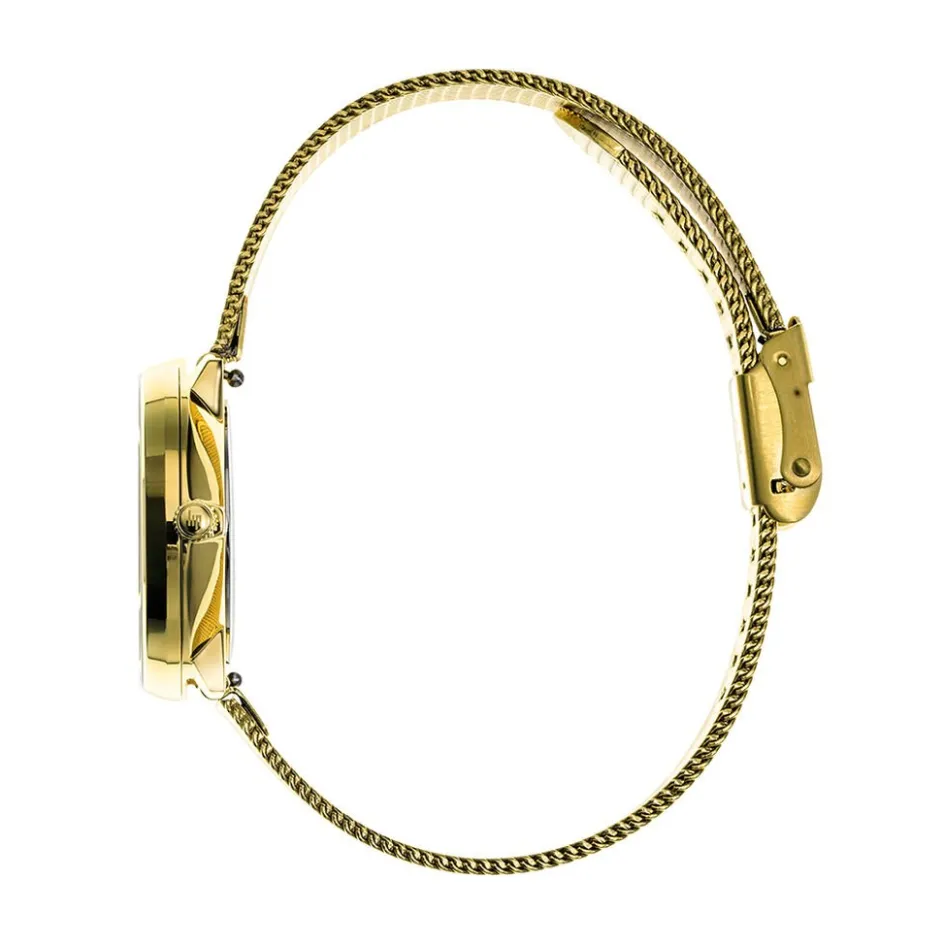 Montre Lip Dauphine Acier Dore Ronde Quartz 29mm Fond Marron Bracelet Acier Dore Milanais 671953