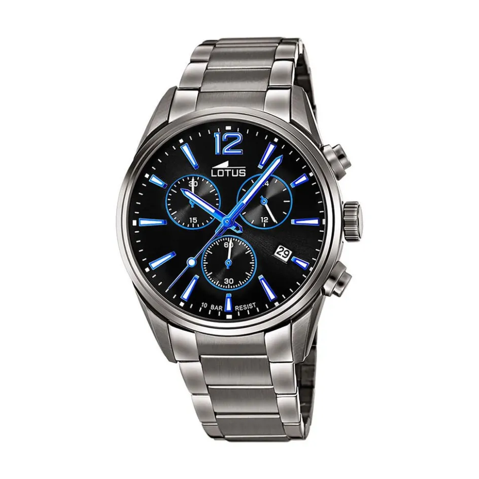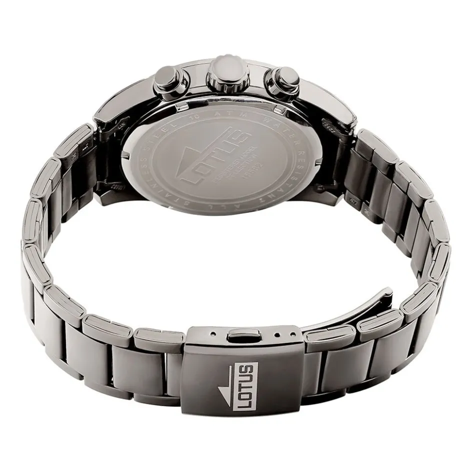 Montre Lotus Chrono Acier Gris Ronde Quartz Chronographe 42mm Fond Noir Bracelet Acier Gris 18682/6