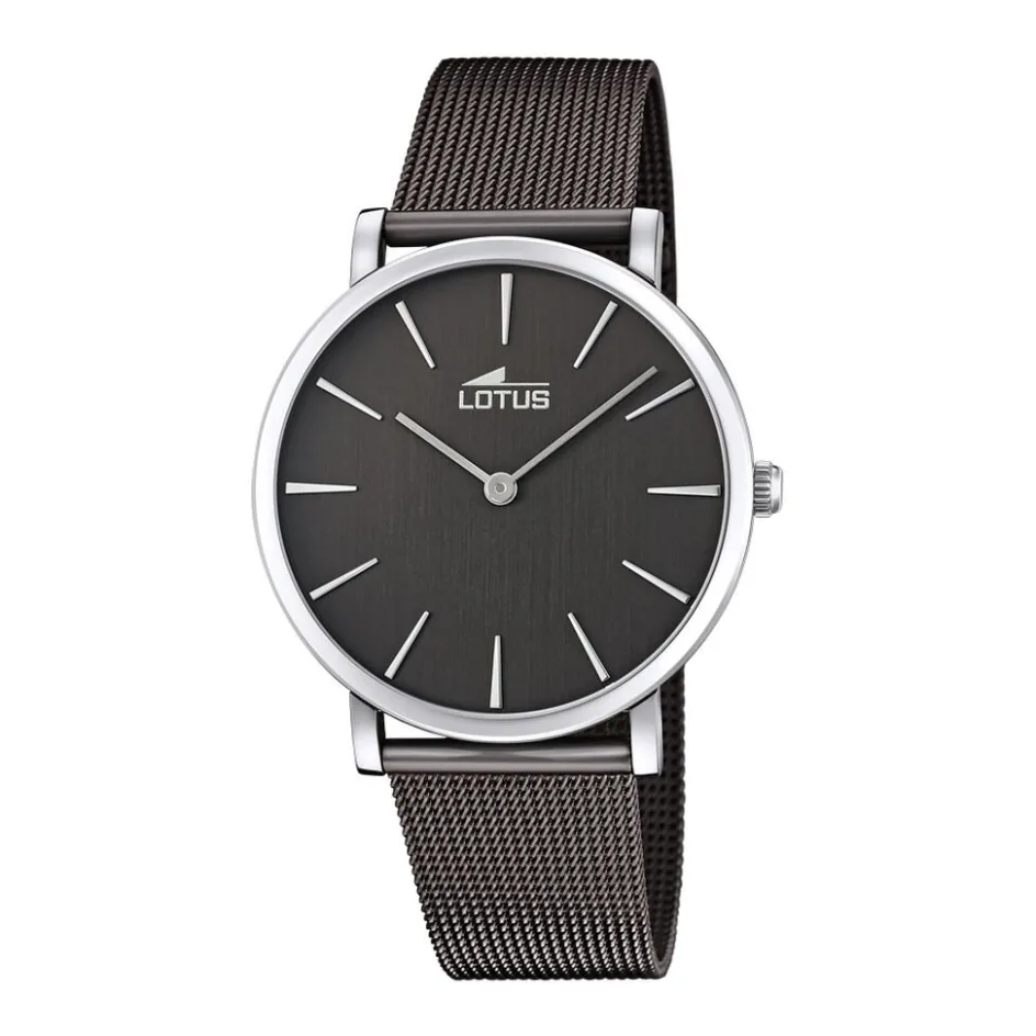 Montre Lotus Minimalist Acier Blanc Ronde Quartz 40mm Fond Noir Bracelet Acier Noir 18771/1