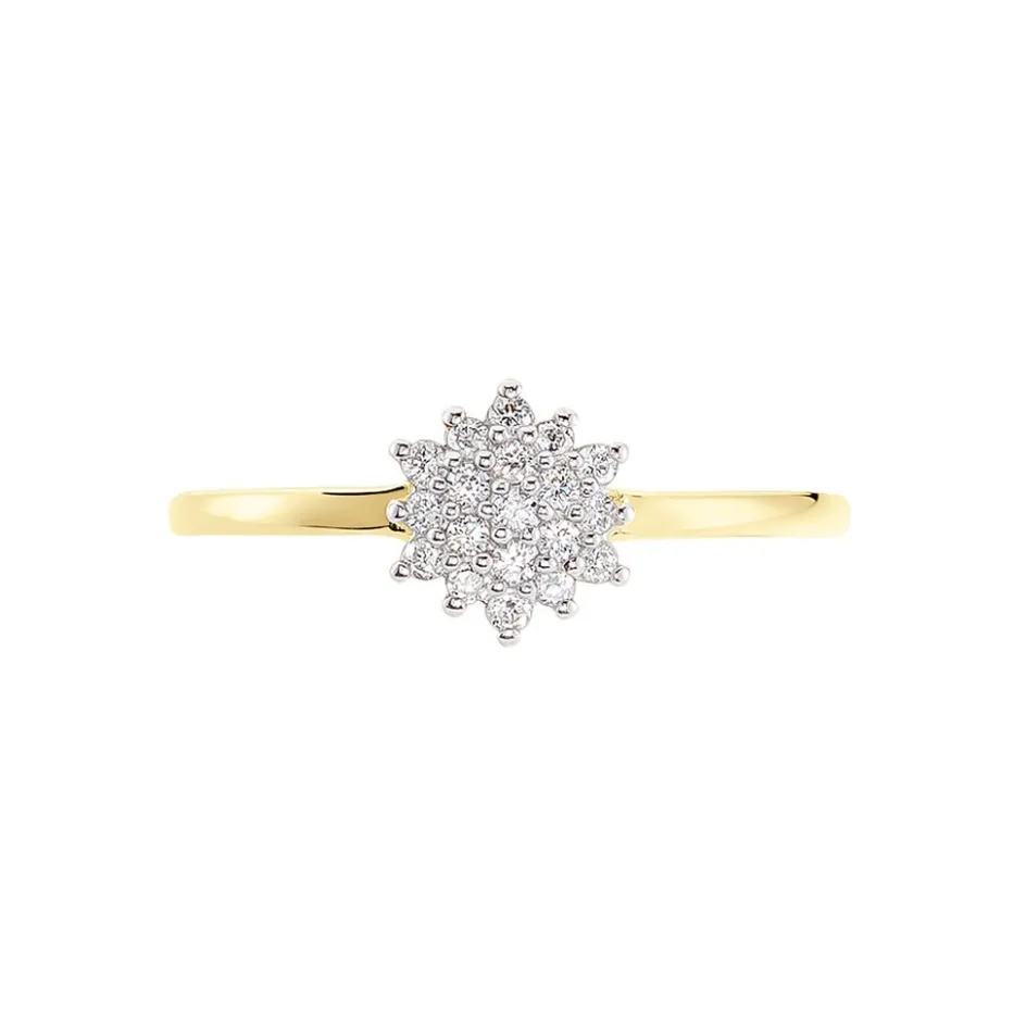 Bague Or Jaune 375/1000 Chou Diamants 0.16cts Serti Griffes
