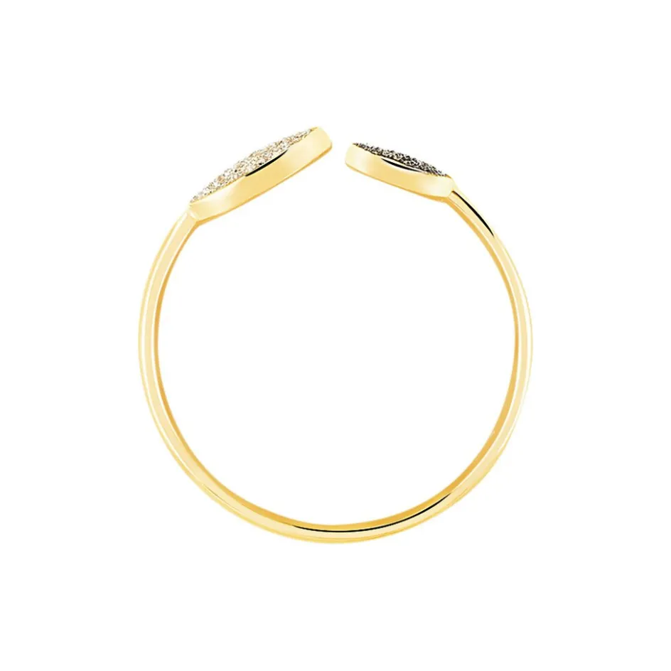 Bague Or Jaune 375/1000 Double Pastilles Glitter Dore Et Bronze