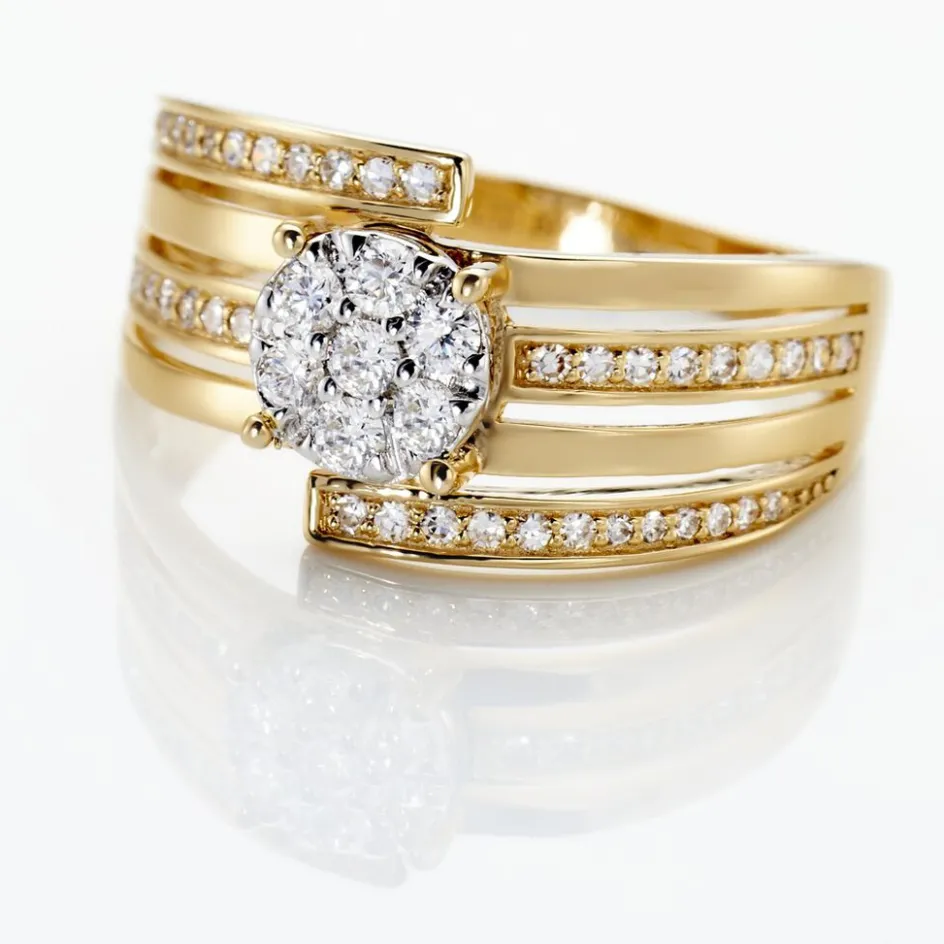 Bague Or Jaune 375/1000 Multipierres Diamants 0.21cts