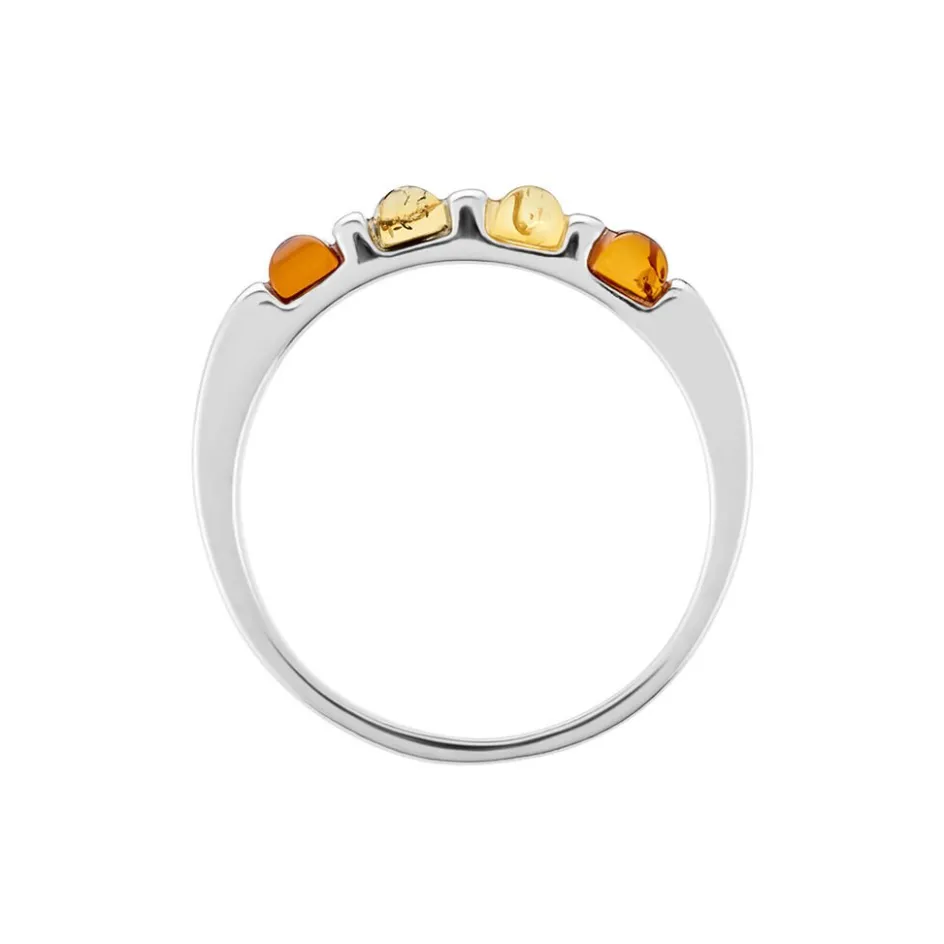 Bague Argent Rhodié 925/1000 Ambre Tricolore Miel Cognac Et Vert