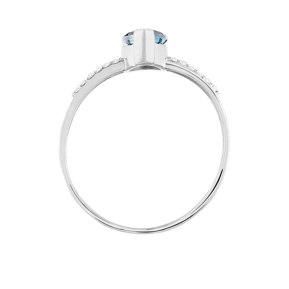 Bague Or Blanc 375/1000 Corps De Bague Croise Topaze Foncee Forme Goutte Accompagnee Diamants