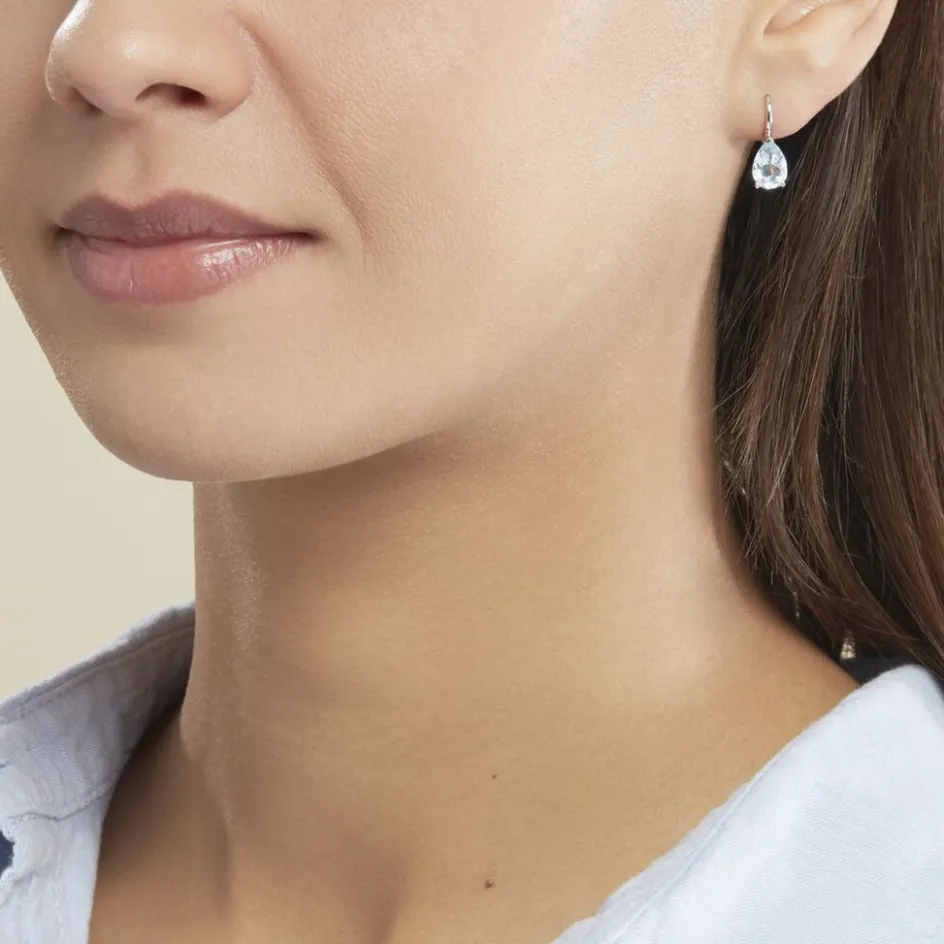 Boucles D’oreilles Or Blanc 375/1000 Topaze Forme Poire