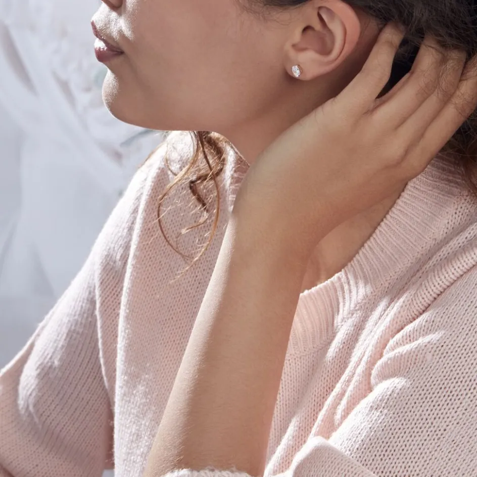Boucles D’oreilles Puces Or Jaune 375/1000 Ovales Serti 4 Griffes Oxydes De Zirconium 6x4mm