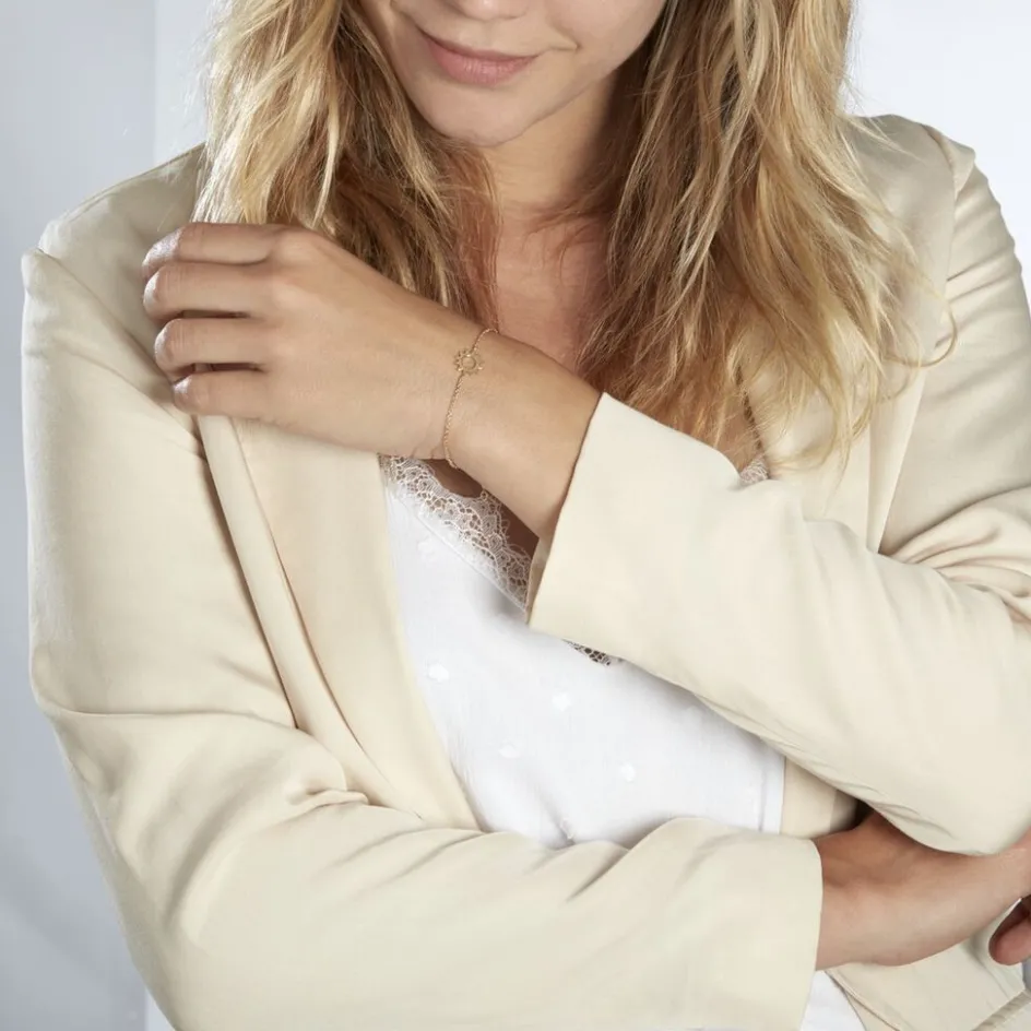 Bracelet Plaqué Or Jaune Motif Soleil Ajoure 18cm
