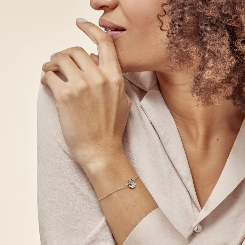 Bracelet Argent 925/1000 tancrede Trefle 4 Feuilles Pavage Oxydes De Zirconium Maille Forcat Traversante 16+3cm