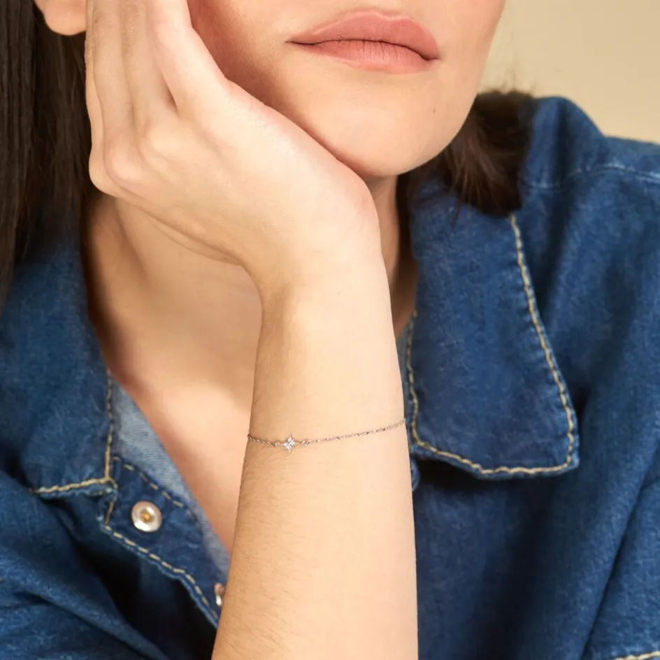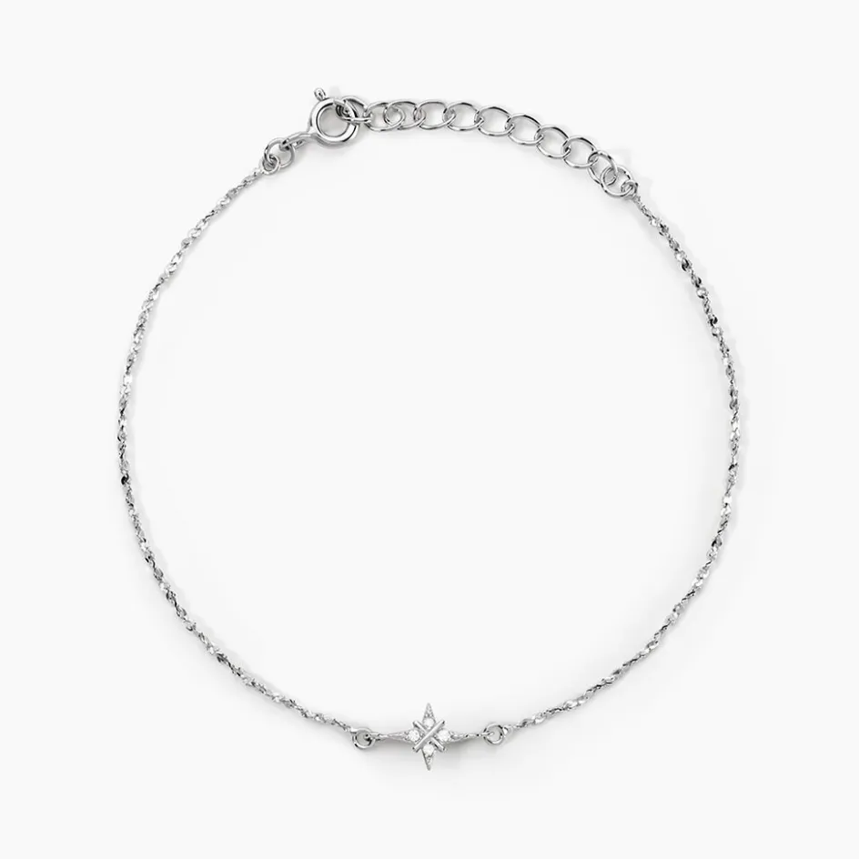 Bracelet Argent 925/1000 étoile Polaire Pavage Oxydes De Zirconium Maille Toresade 16+3cm