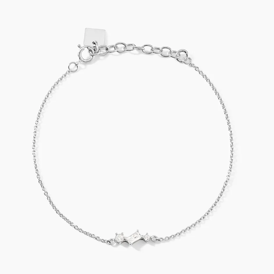 Bracelet Argent Blanc 925/1000 Oxydes De Zirconium Serti Griffes Maille Forçat 16+3cm
