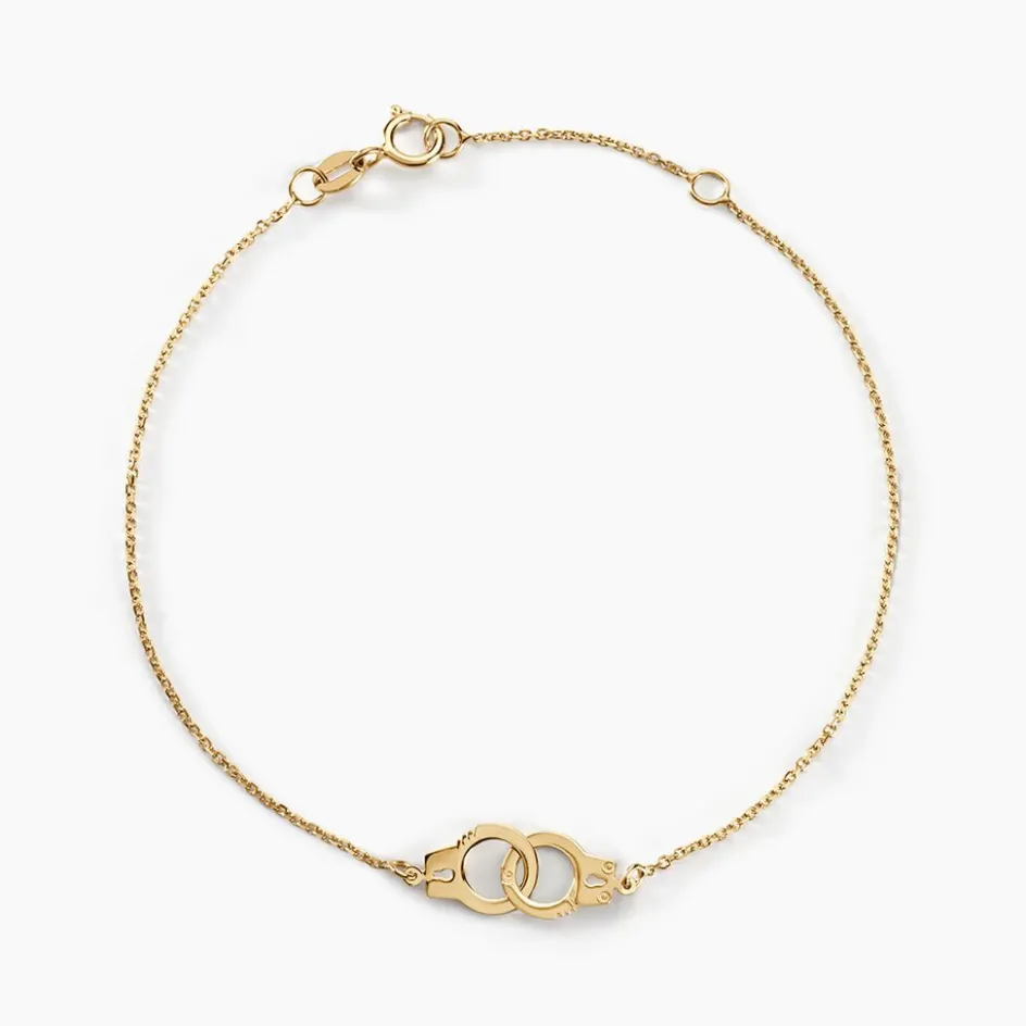Bracelet Or Jaune 375/1000 Doubles Cercles Maille Jaseron 16+2cm