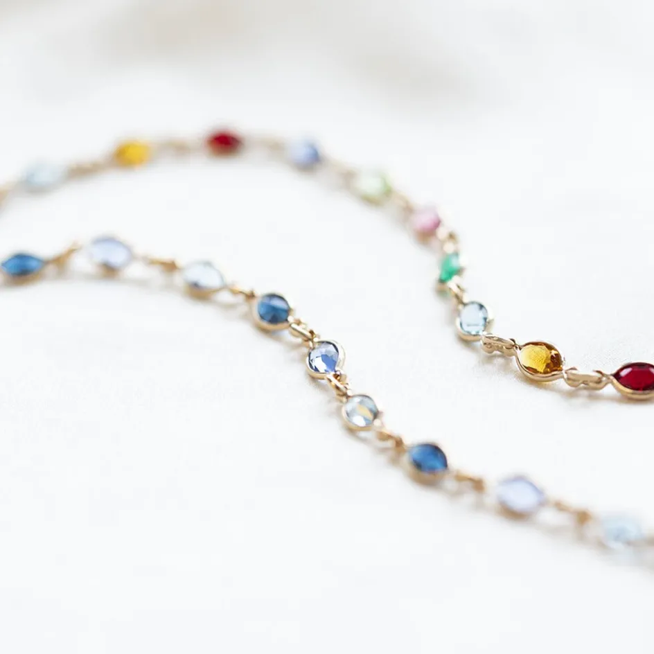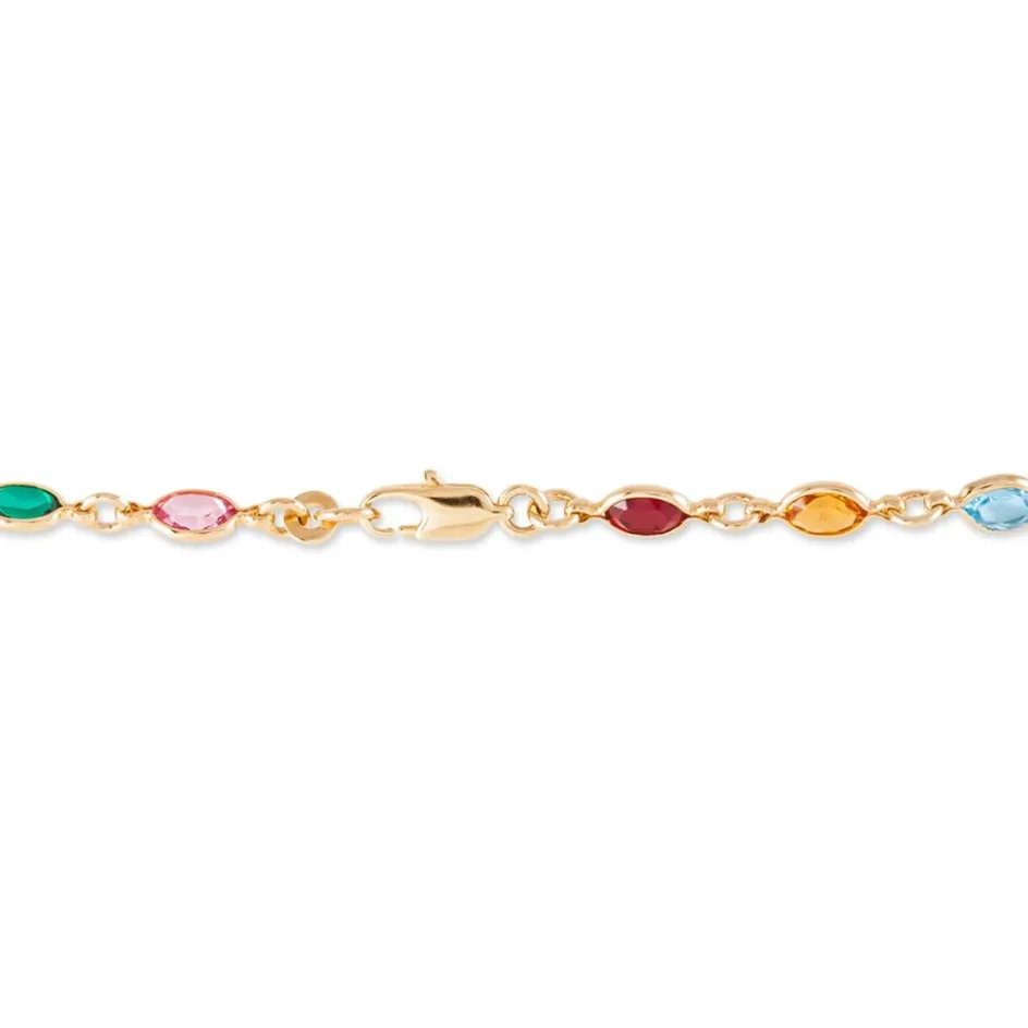 Bracelet Plaqué Or Jaune Pierres Multicolores 18cm