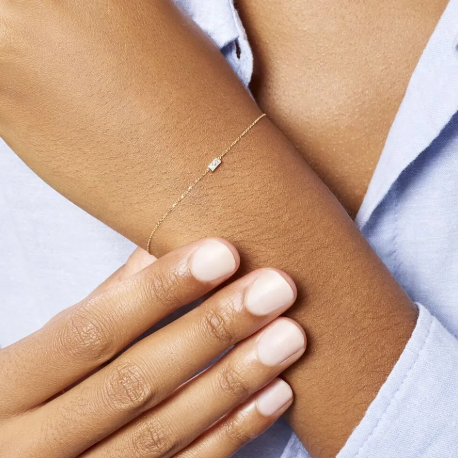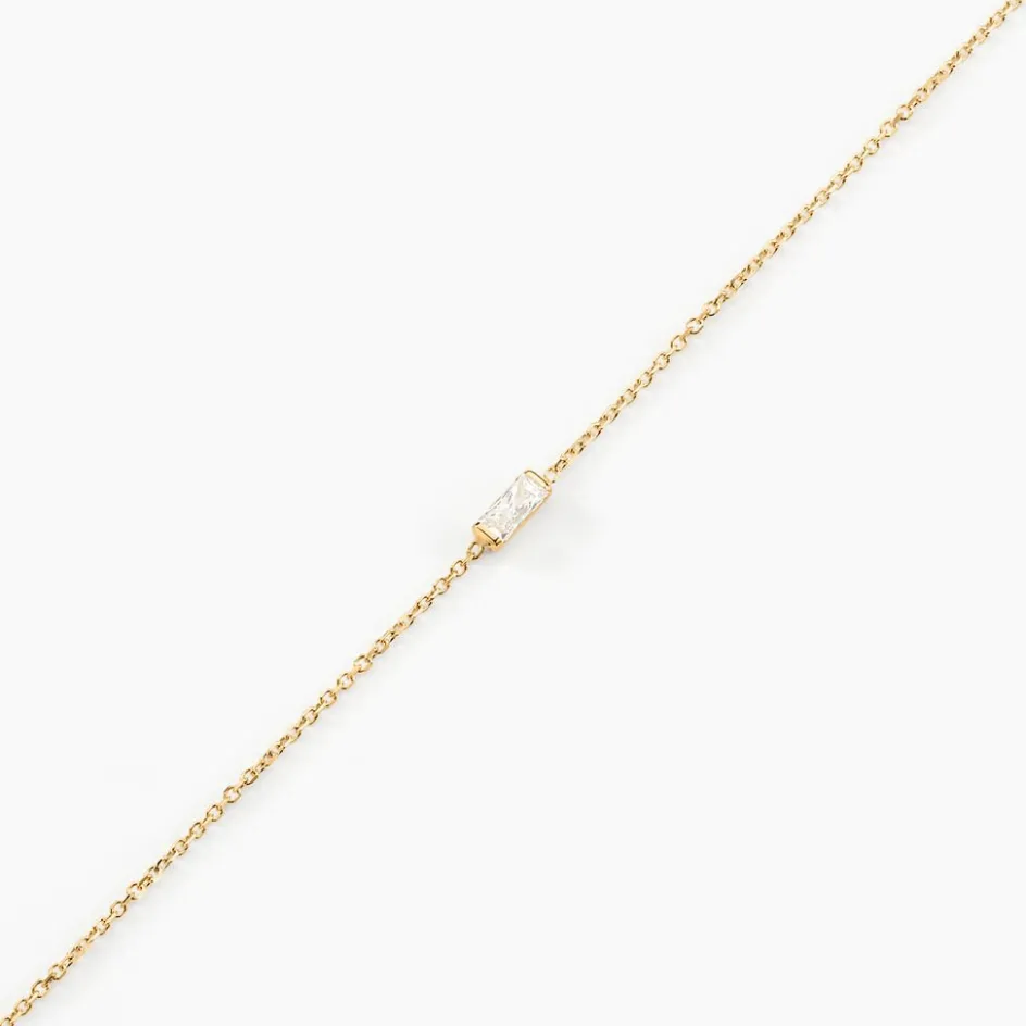 Bracelet Or Jaune 375/1000 Solitaire Oxyde De Zirconium Maille Forçat 18cm