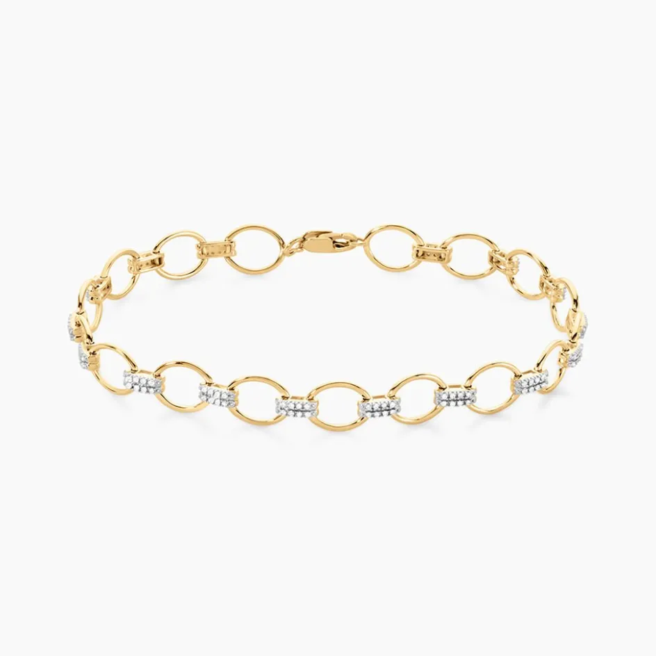 Bracelet Or Jaune 375/1000 Maillons Et Diamants 19cm