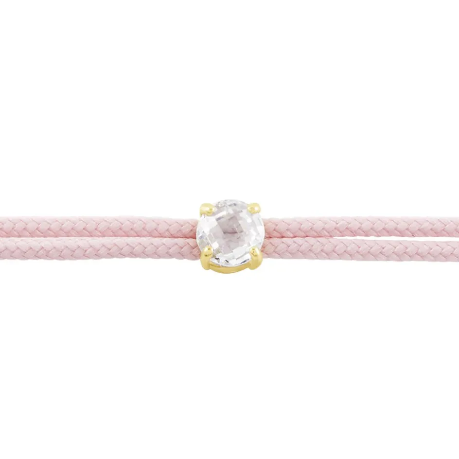 Bracelet Or Jaune 375/1000 Oxyde De Zirconium Cordon Ajustable Rose 14cm