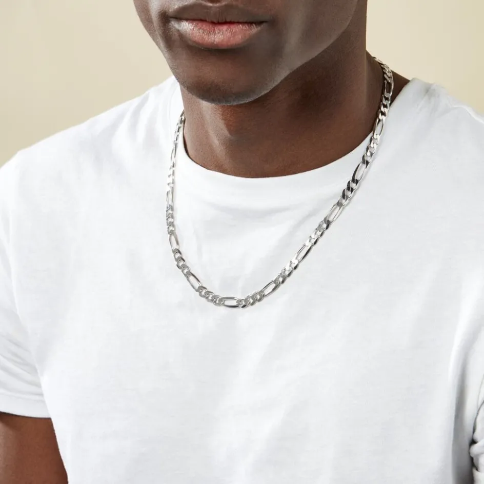 Collier Argent Blanc 925/1000 Maille Alternee 1/3 Epaisseur 6.8mm 55cm