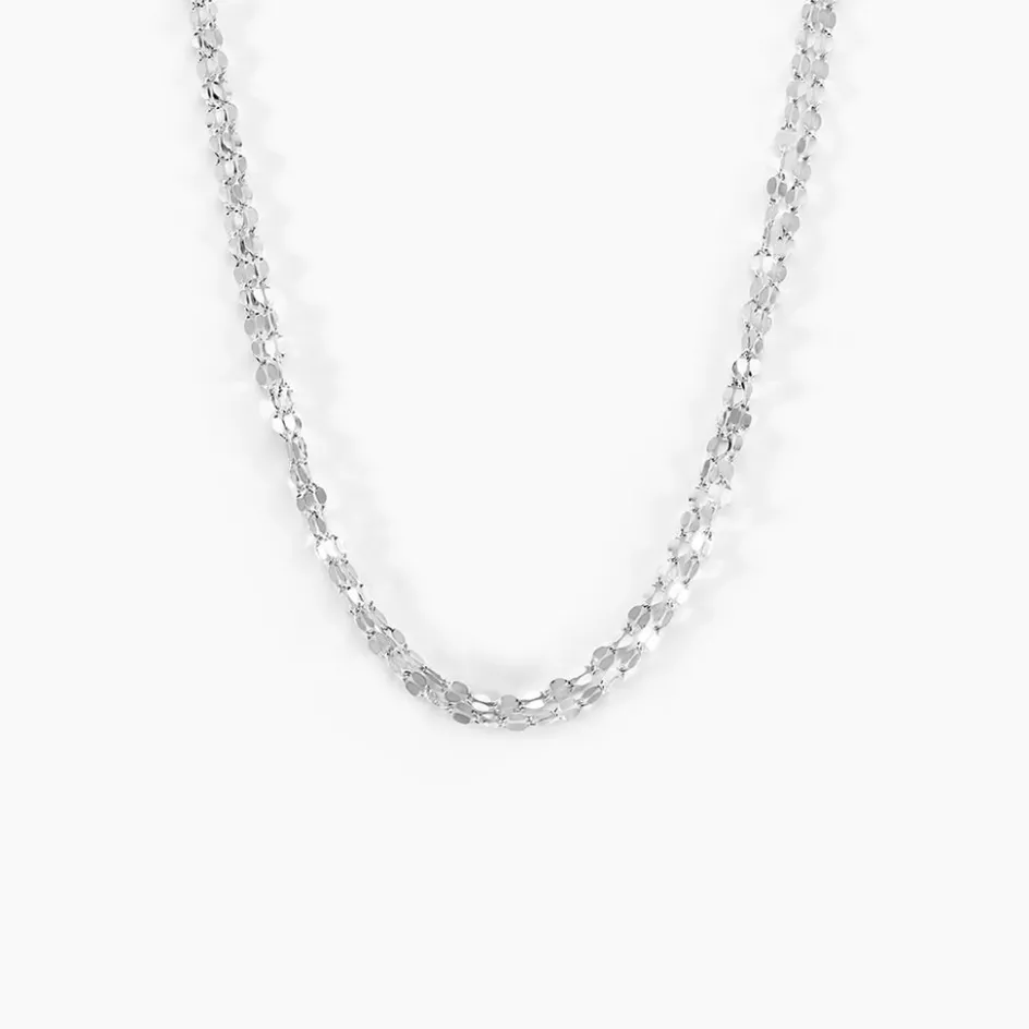 Collier Argent Blanc 925/1000 Double Chaines Mailles Fantaisie 50cm
