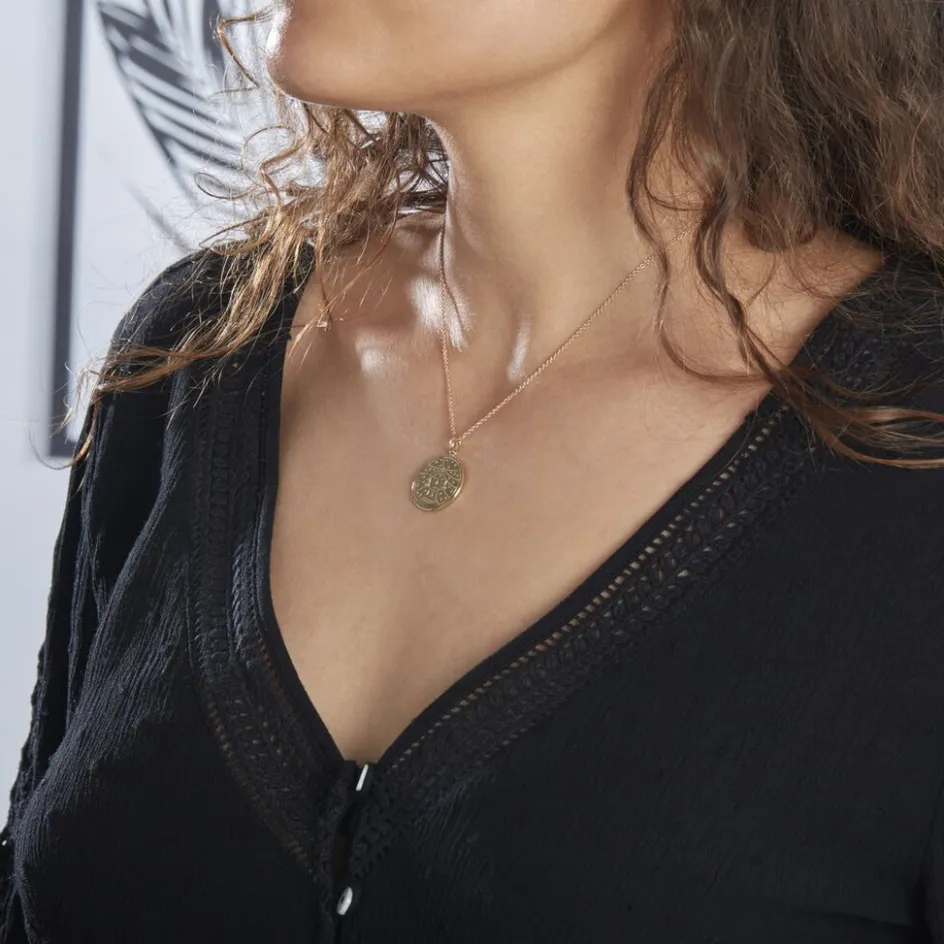 Collier Plaqué Or Jaune Forme Ronde Signe De La Vierge Chaine Forcat 44cm