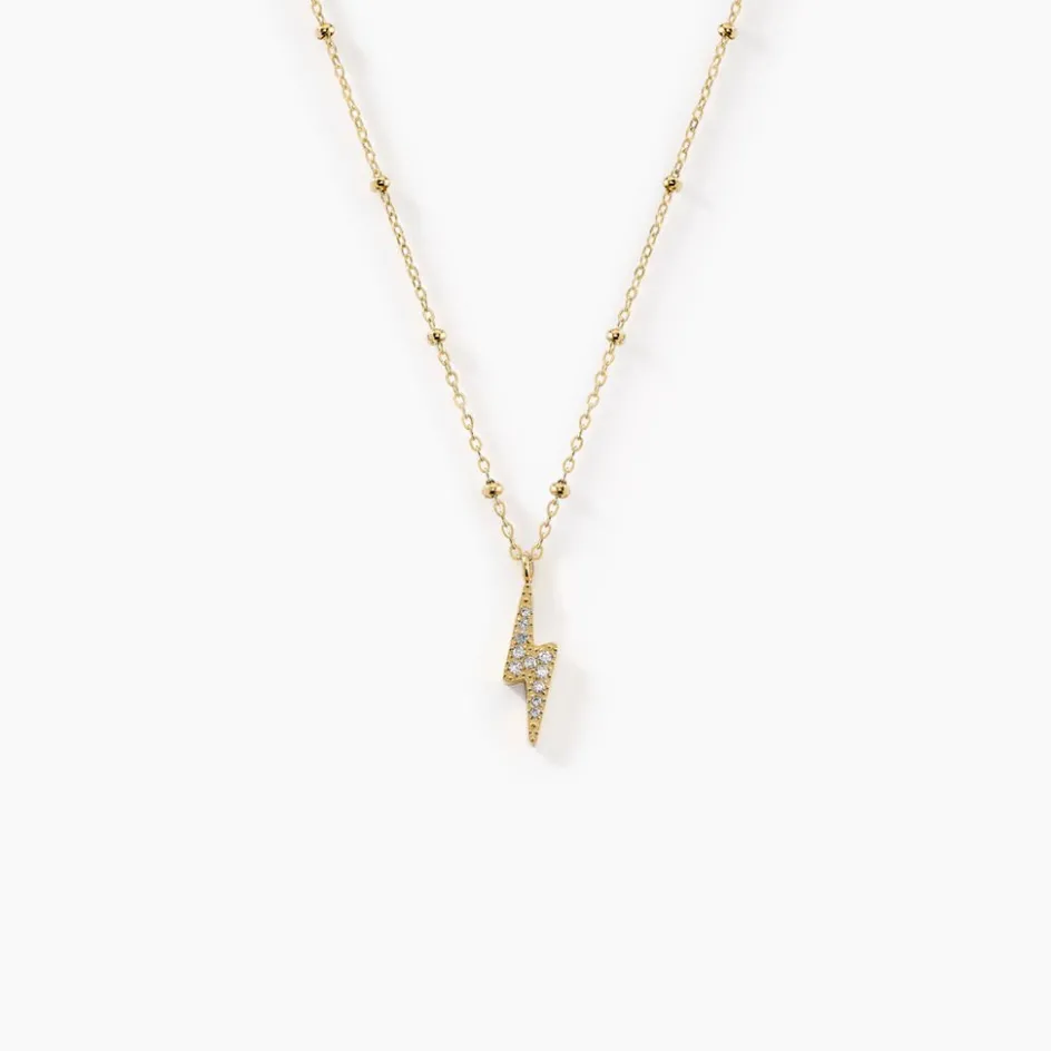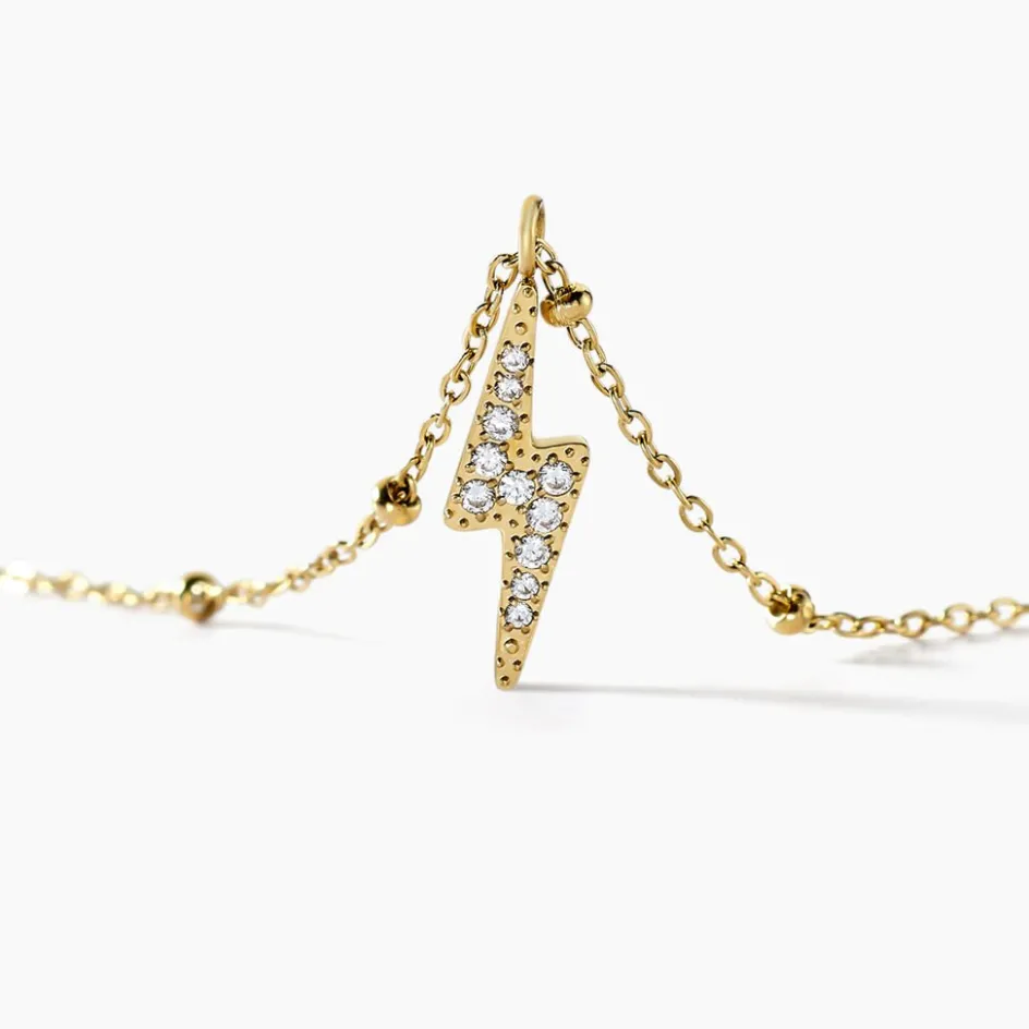 Collier Aurore Acier Doré éclair Serti Pavage Cristal Chaine Criss-cross 45cm