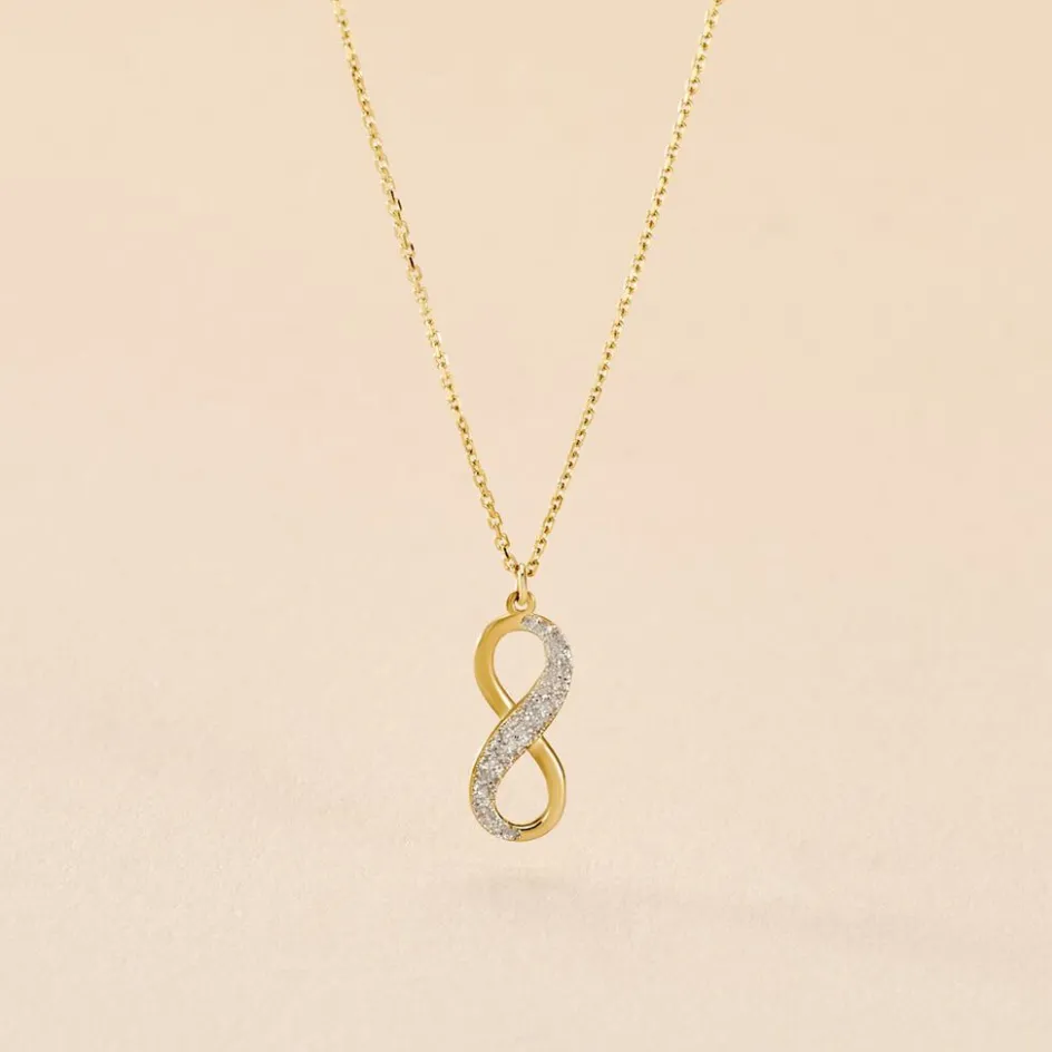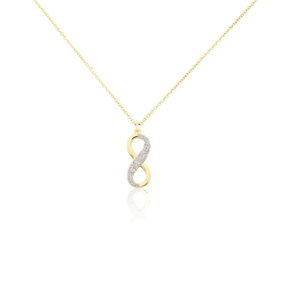 Collier Or Jaune 375/1000 Infini Vertical Glitter Argente Maille Jaseron 40+2cm
