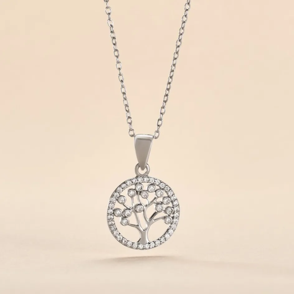 Collier Argent 925/1000 chimere Arbre De Vie Pm Micro Setting Et Sertis Clos Oxydes De Zirconium 45cm