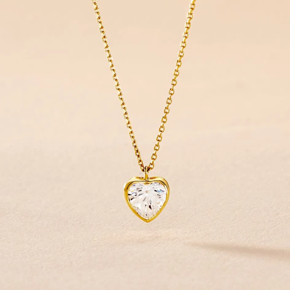 Collier Or Jaune 375/1000 Maille Jaseron Forme C艙ur Oxyde De Zirconium Serti Clos 40cm