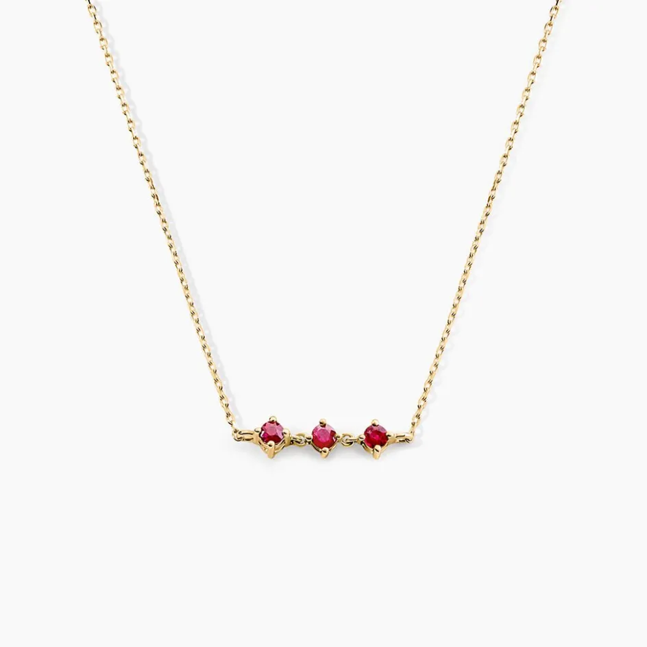 Collier Or Jaune 375/1000 Trilogie Rubis Ronds 0,13Cts Sertis Griffes Maille Forcat 42+3Cm