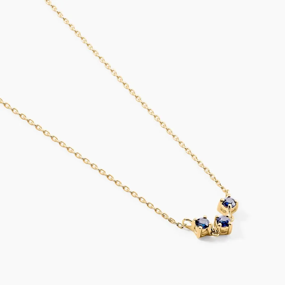 Collier Or Jaune 375/1000 Trilogie Saphir Ronds 0,13Cts Sertis Griffes Maille Forcat 42+3Cm