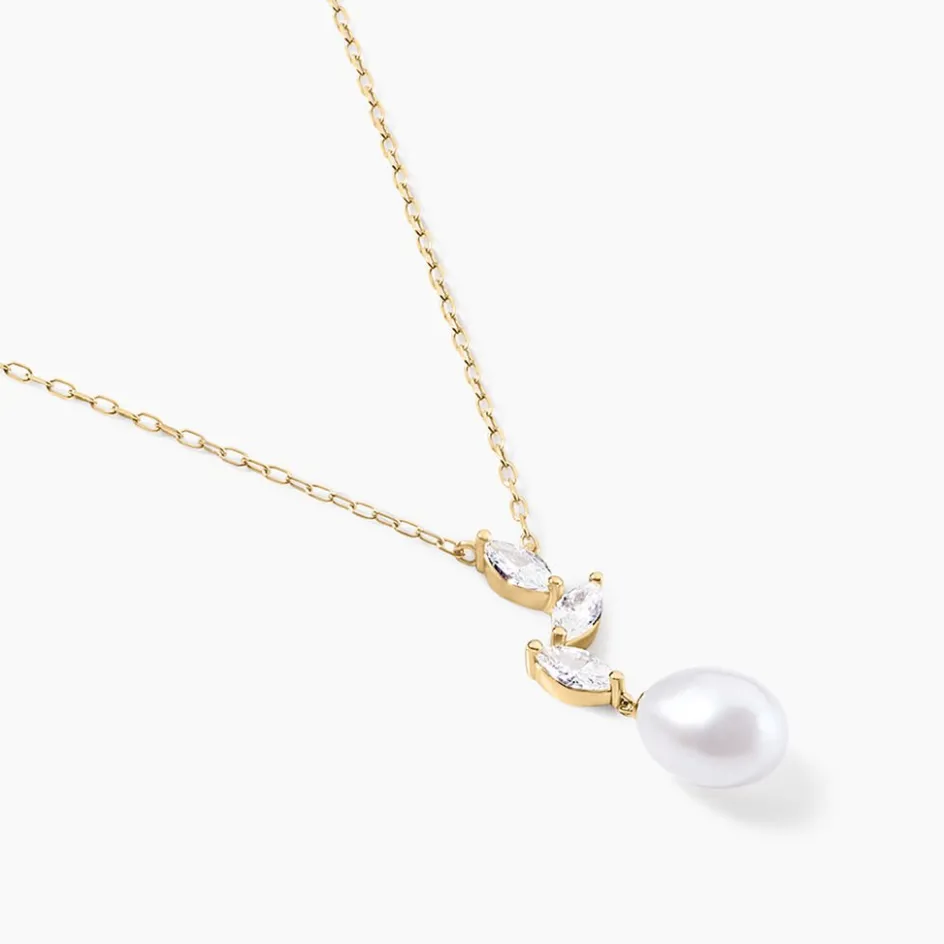 Collier Or Jaune 375/1000 Perle De Culture Baroque 6Mm Accompagne Navette Oxyde De Zirconium Maille Forcat 40+2Cm