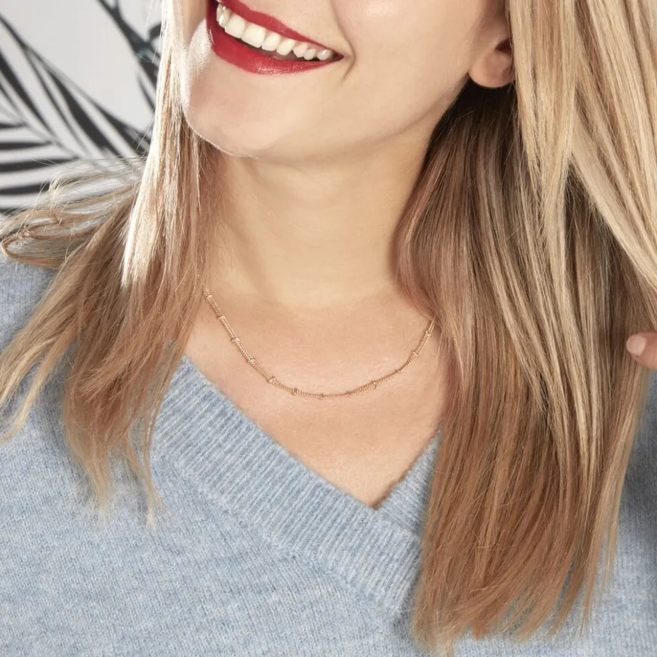 Collier Plaqué Or Jaune Double Chaines Et Barrettes 50cm