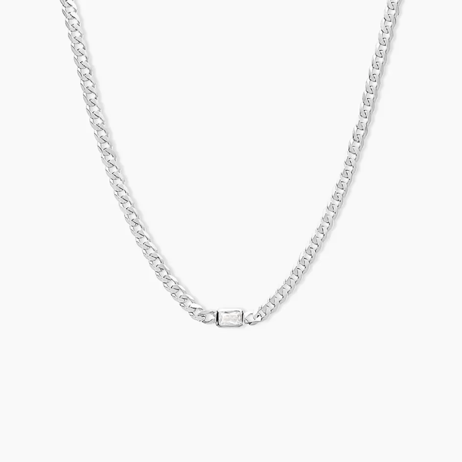 Collier Argent 925/1000 nexus Oxyde De Zirconium Rectangle Serti Clos Maille Gourmette Largeur 3.4mm 37+3cm