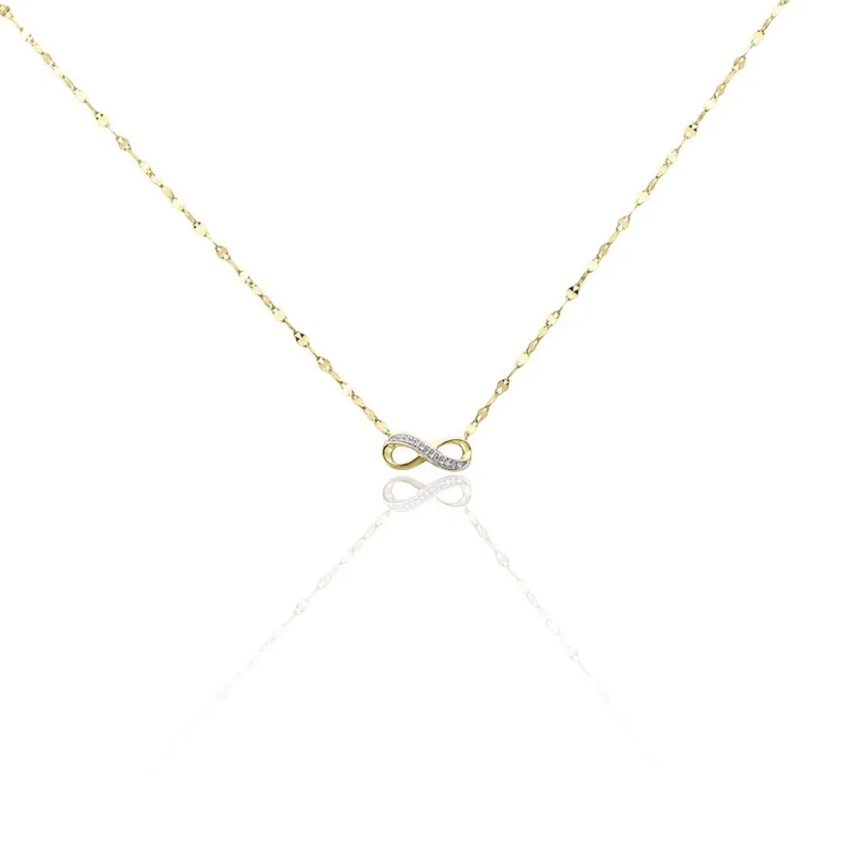 Collier Or Jaune 375/1000 Motif Infini Diamants Maille Lumina 40+2cm