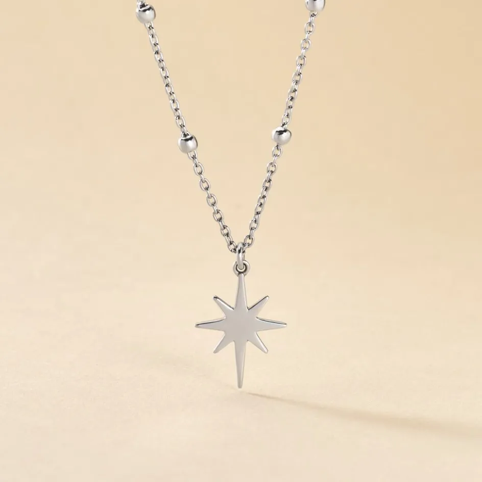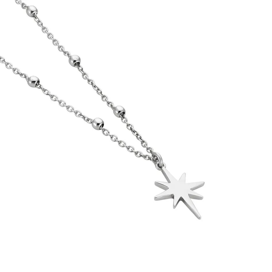 Collier Argent Blanc 925/1000 Motif étoile Maille Boules 45cm