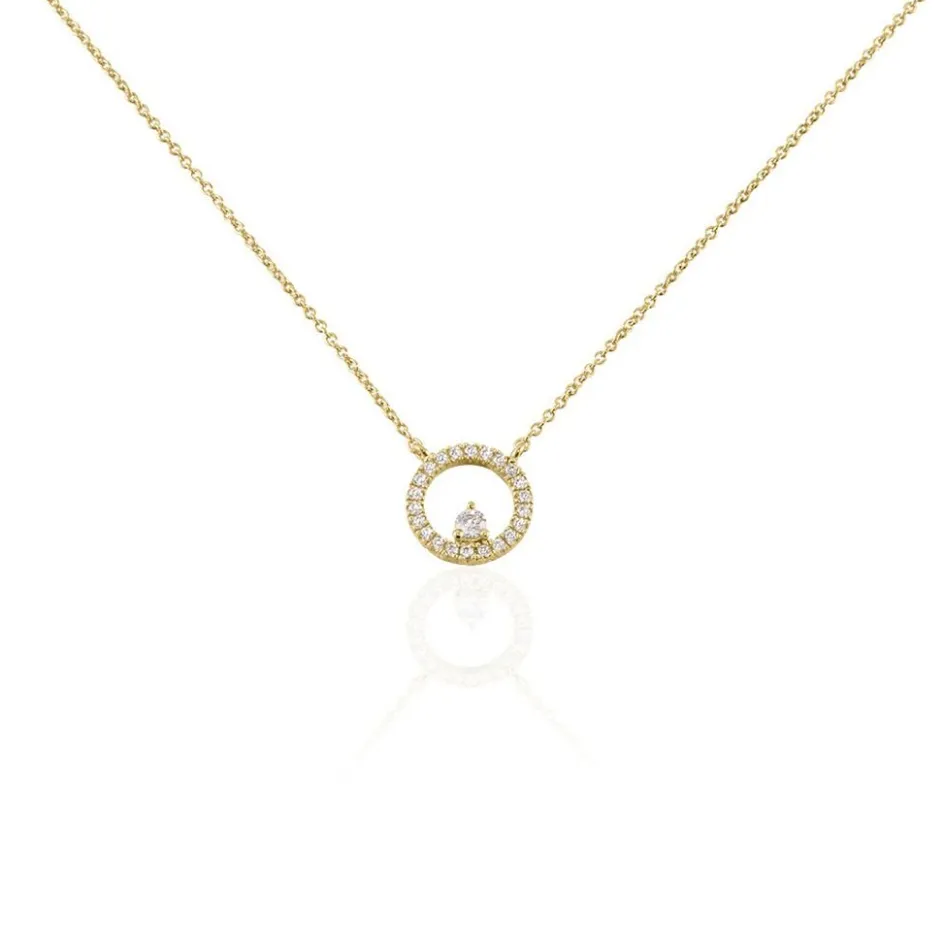 Collier Plaque Or Jaune Oxyde Central Cercle Pavage Oxydes De Zirconium Maille Forcat 45cm