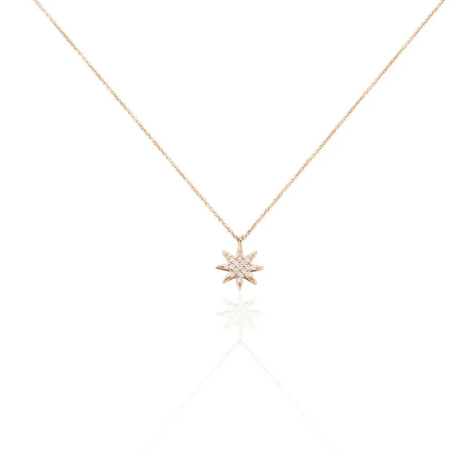 Collier Argent Rose 925/1000 Motif Etoile Pavee Oxydes De Zirconium 45cm