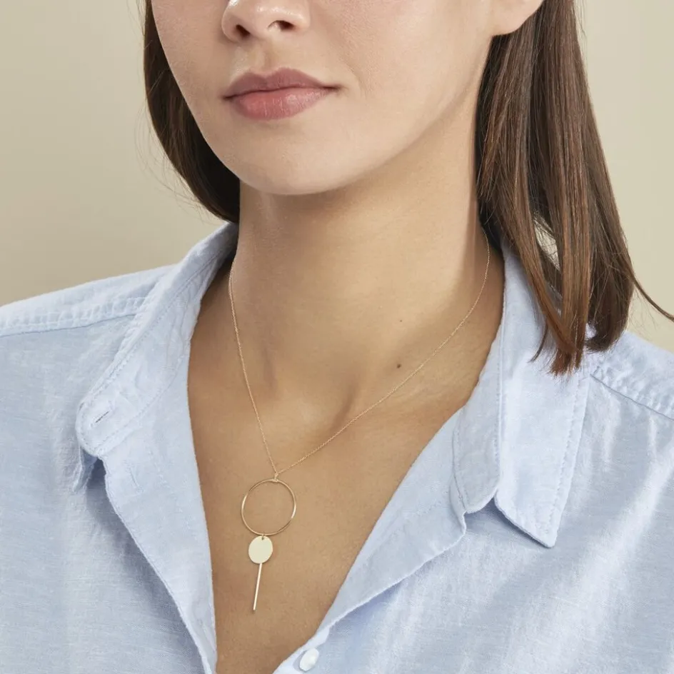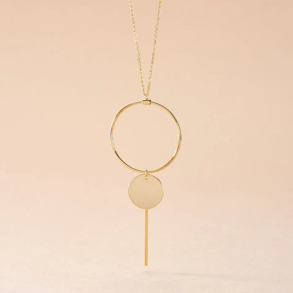 Collier Or Jaune 375/1000 Cercle Ajoure + Pampilles Cercle Plein Et Barrette Maille Jaseron 42cm