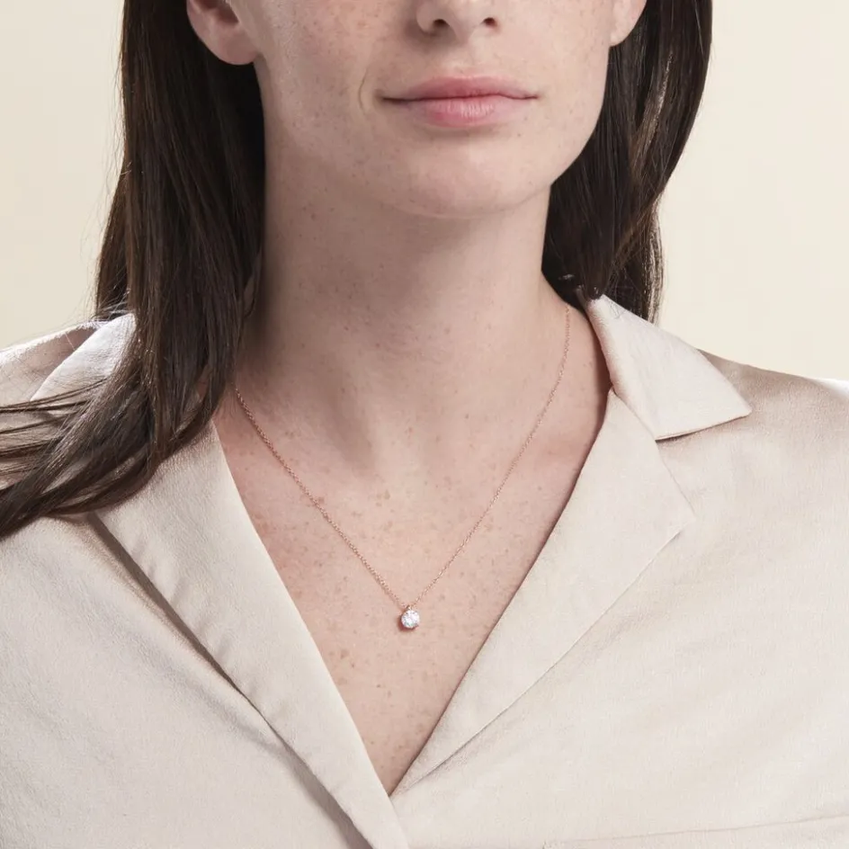 Collier Solitaire Argent Rose 925/1000 Maille Forçat Sertis Griffes Oxyde De Zirconium 6mm 45cm