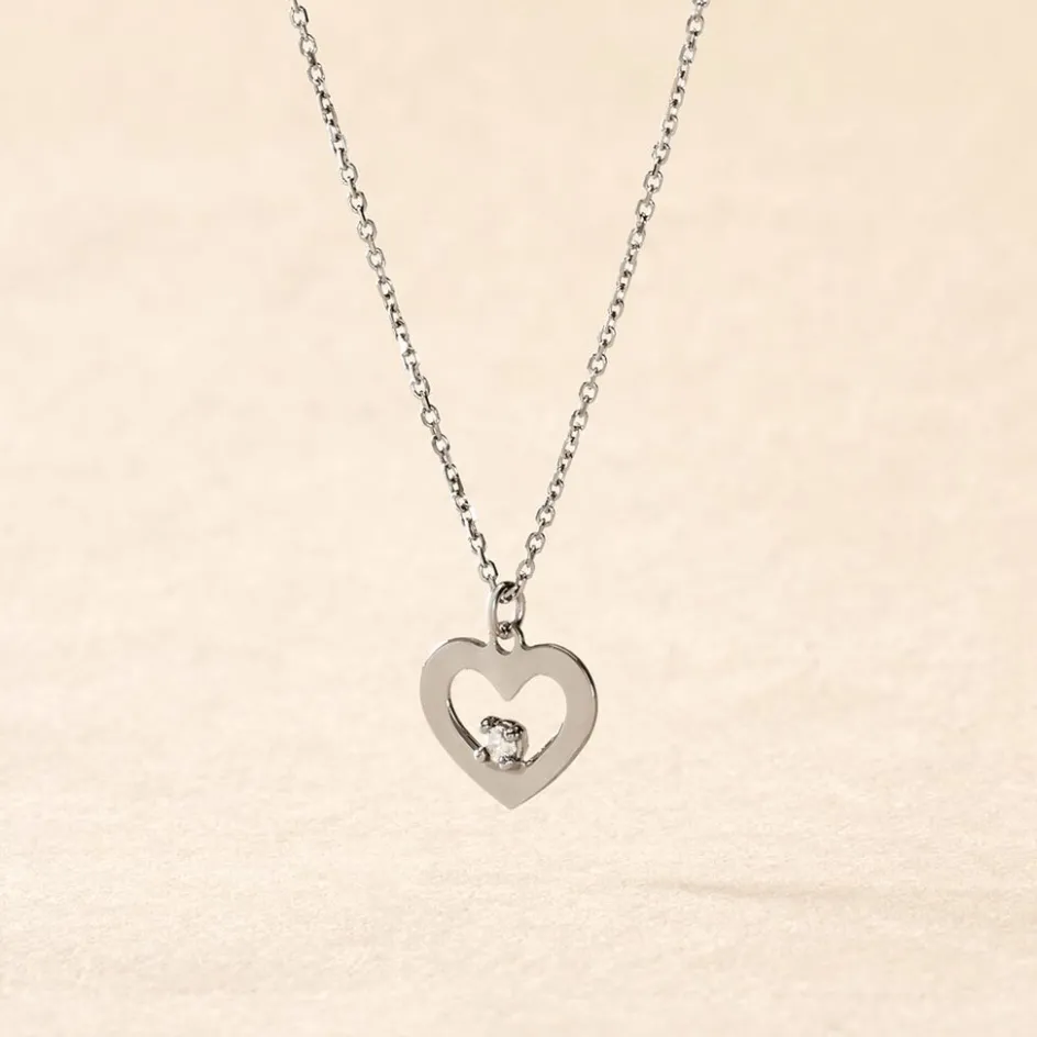 Collier Or Blanc 375/1000 Sweet Heart C艙ur Et Diamant Blanc 42cm