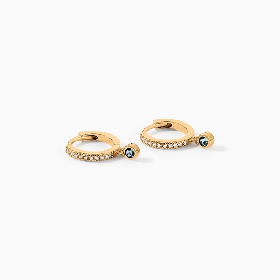 Creoles Plaque Or Jaune Pampilles Pierres Bleues Et Pavage Oxydes De Zirconium Diametre 10mm