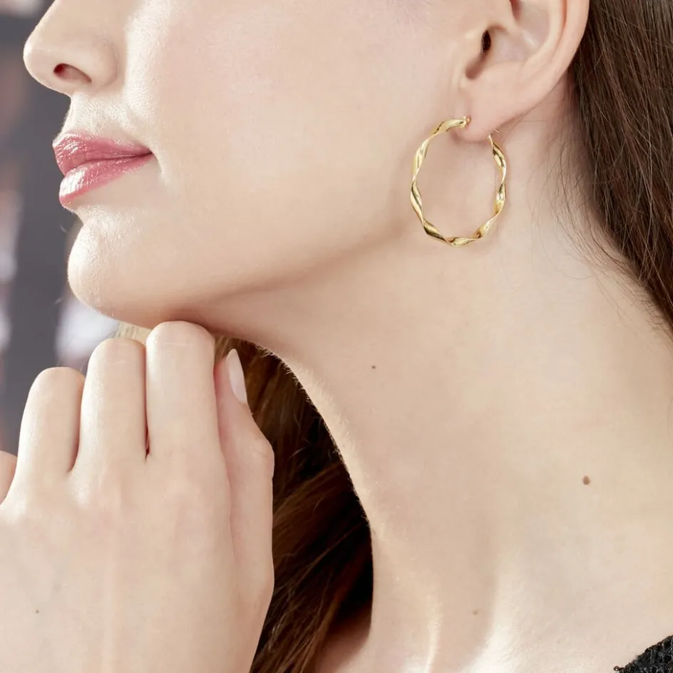 Créoles Or Jaune 375/1000 Ovales Fil Vrillé Largeur 1.5mm Diamètre 30mm