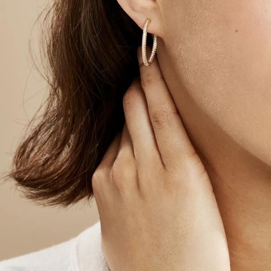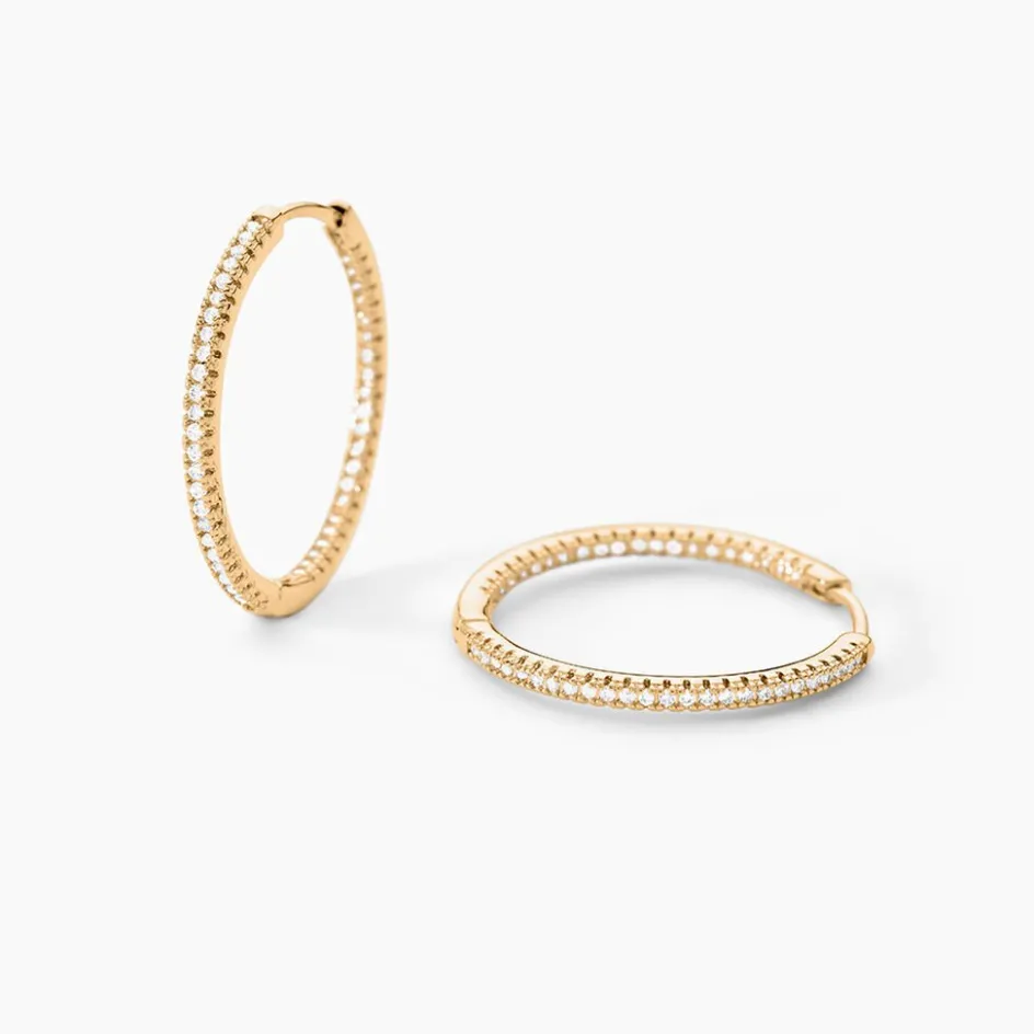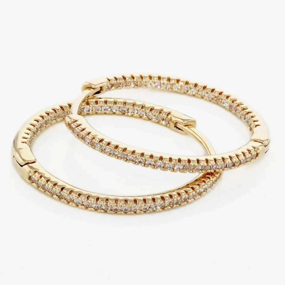Creoles Plaqué Or Jaune Pavage Oxydes De Zirconium Exterieur Et Interieur Diametre 25mm
