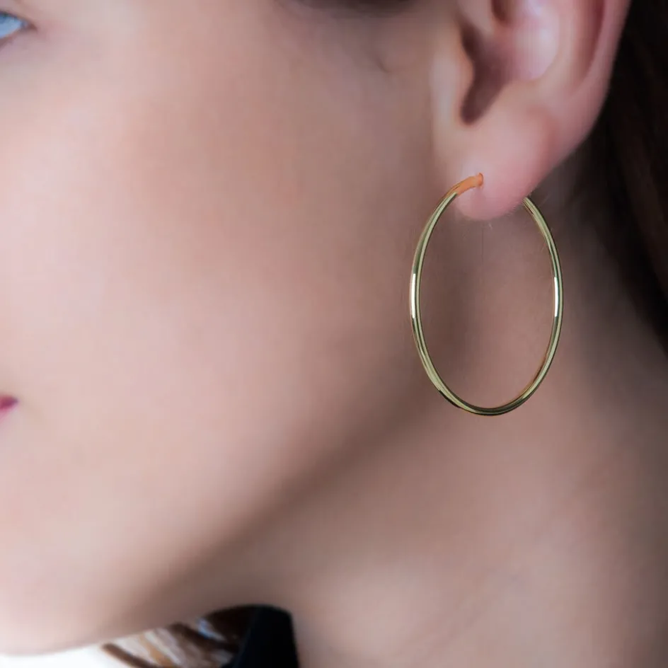 Créoles Or Jaune 750/1000 Fil Rond Lisse Largeur 2mm Diamètre 40mm